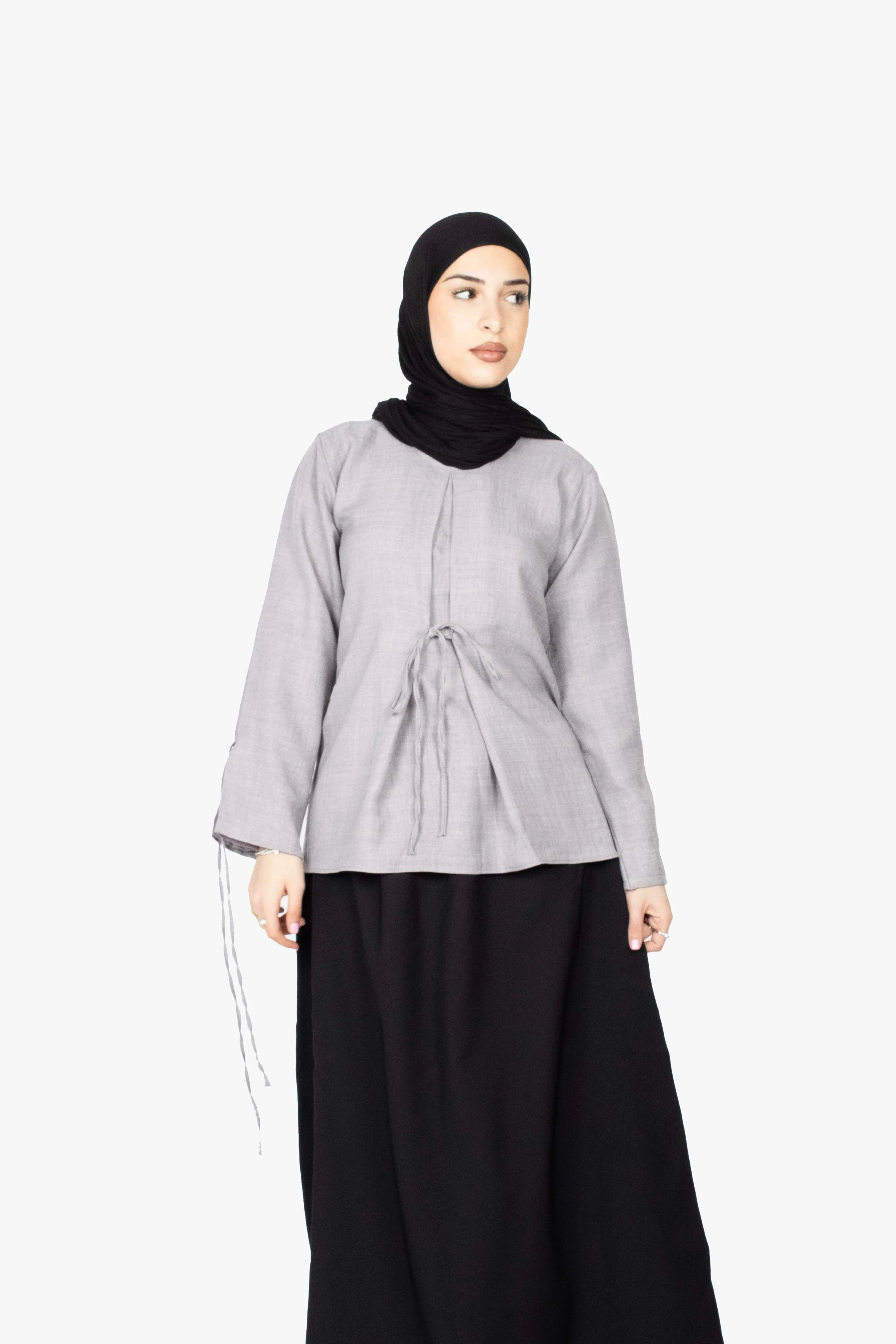 A Spring/Summer staple, our Ribbon Kimono Top in Grey Mélange features a subtle front slit and a ribbon-tied centre.